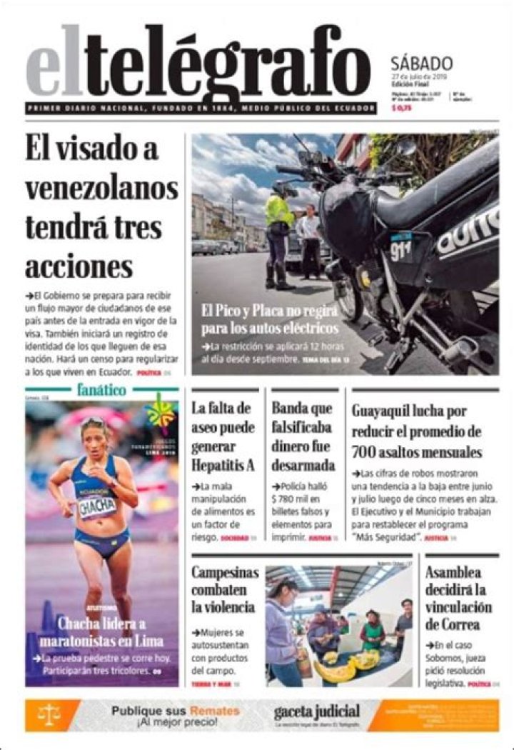 Periódico El Telégrafo (Ecuador). Periódicos de Ecuador. Edición de